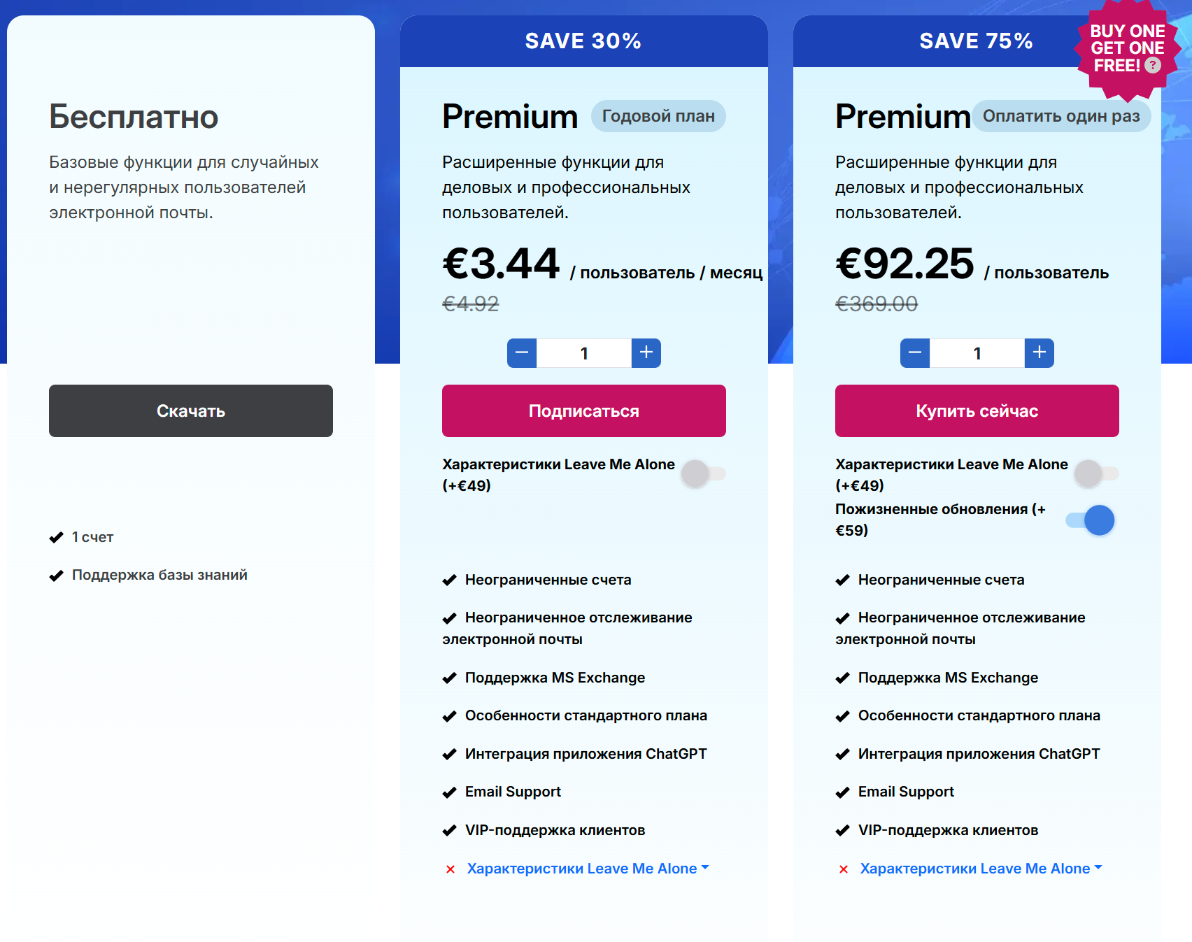 А за €49 можно получить функции Leave Me Alone, куда входят возможности быстрой отписки от рассылок, улучшенная защита от спама, объединение рассылок и специальные почтовые адреса для подписки на рассылки. Кстати, на эту фишку тоже есть пожизненные лицензии, но с ограничениями.