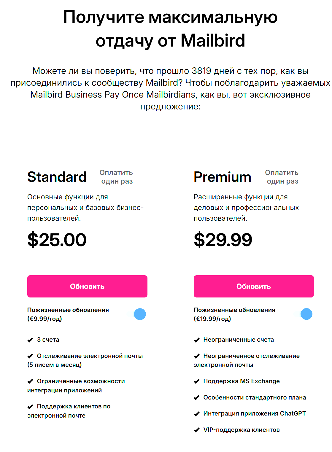 Но я хочу предупредить насчёт пожизненной лицензии. Моя пожизненная лицензия оказалась не такой уж и пожизненной. При вводе ключа Mailbird попросил занести в кассу дополнительную оплату.