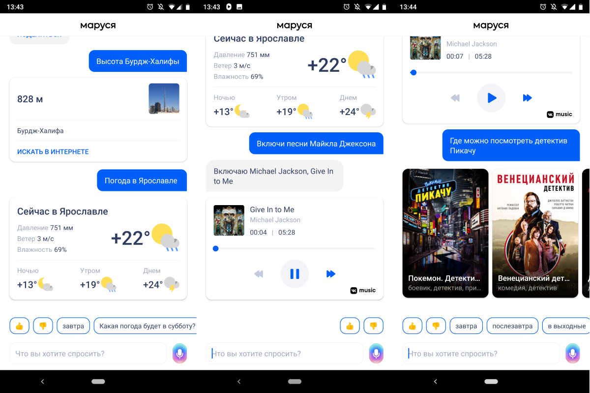 Рассказывать подробно про стандартные запросы к ассистенту я не буду. Здесь поддерживается всё то же самое, что и у конкурентов. С некоторыми исключениями.