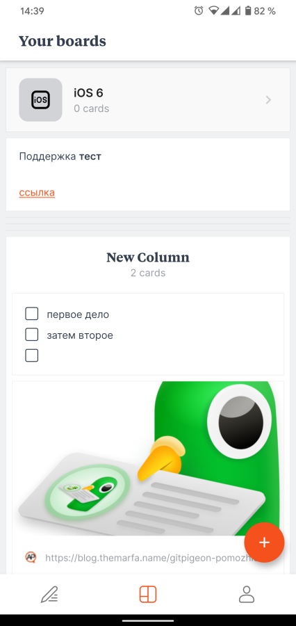 Приложения для Android и iOS — это немного облегчённая версия Milanote. С телефона можно создать текстовую заметку, список дел или загрузить изображение. При этом поддерживаются все те же типы форматирования, что и в полноценной версии.