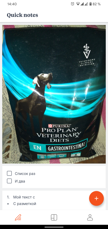Текстовая заметка. Это простой текст с поддержкой Markdown. У заметки можно менять форматирование и добавлять реакции (эмодзи).