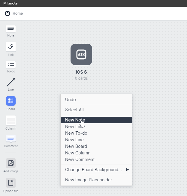 Milanote — это набор из досок. Поэтому все заметки можно расположить на них так, как вам удобно. А вся работа происходит с помощью контекстного меню или обычного перетаскивания.