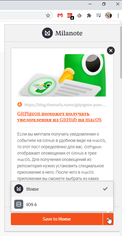 При создании заметки из клиппера можно выбрать доску или папку Home. В этом случае заметка появится в разделе Unsorted, откуда её можно обработать.