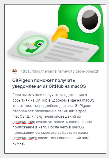 Ссылка. Такой же элемент, как и заметки. Только здесь ссылка с возможностью добавления описания. Описание подтягивается по умолчанию.