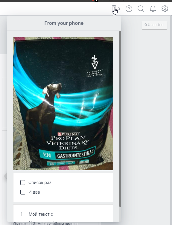 Заметки с телефона собираются в уведомлениях в веб-версии, откуда их можно легко перенести на доску.