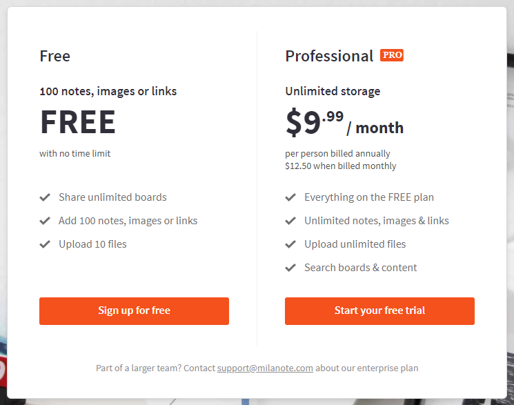 Milanote можно пользоваться бесплатно. При этом вы сможете хранить не более 100 заметок, изображений или ссылок и не более 10 файлов. Можно делиться любым количеством досок.