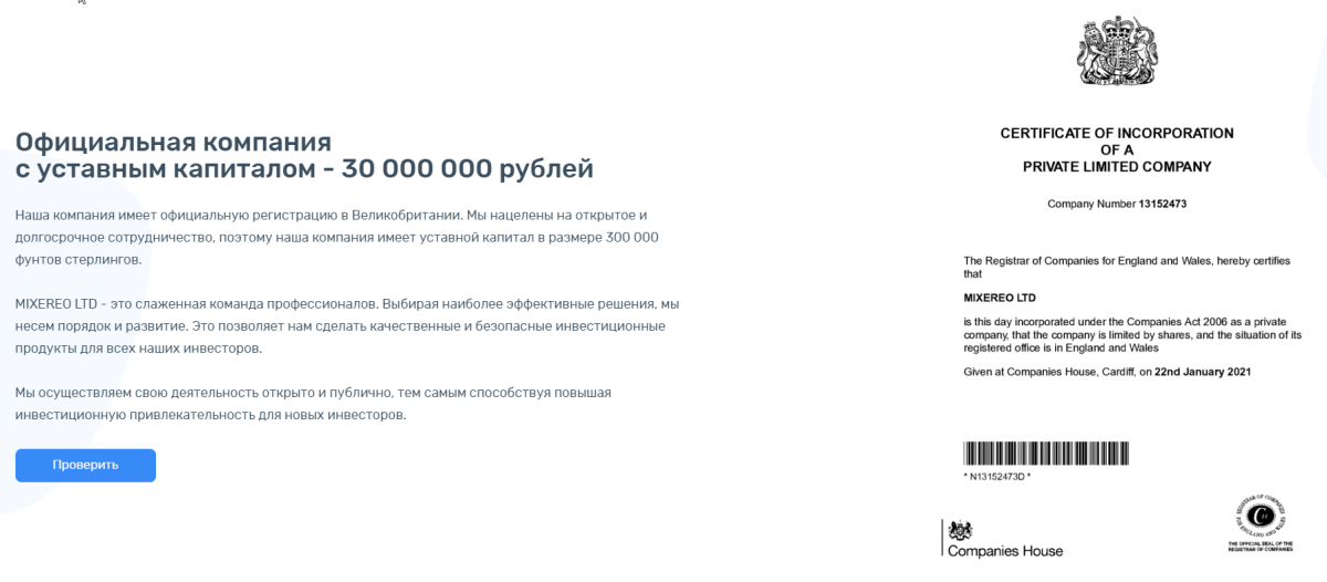 Mixereo, он же MIXEREO LTD, это официальная компания с уставным капиталом, блек-джеком и прочими радостями.