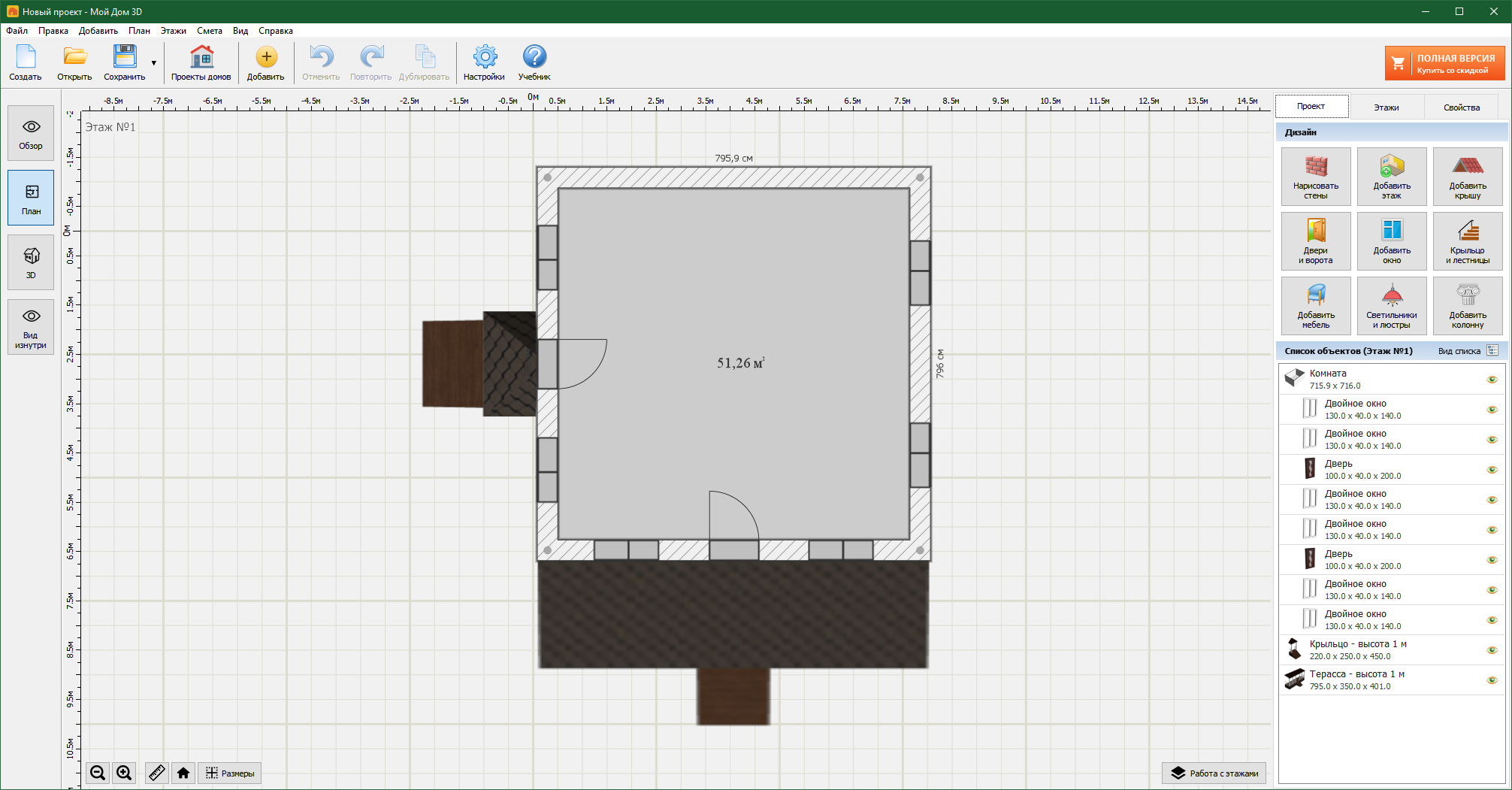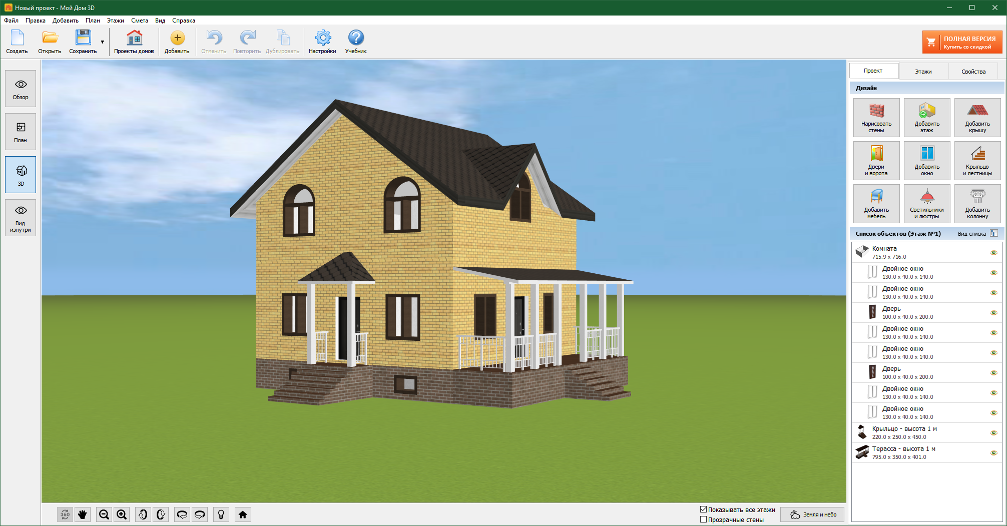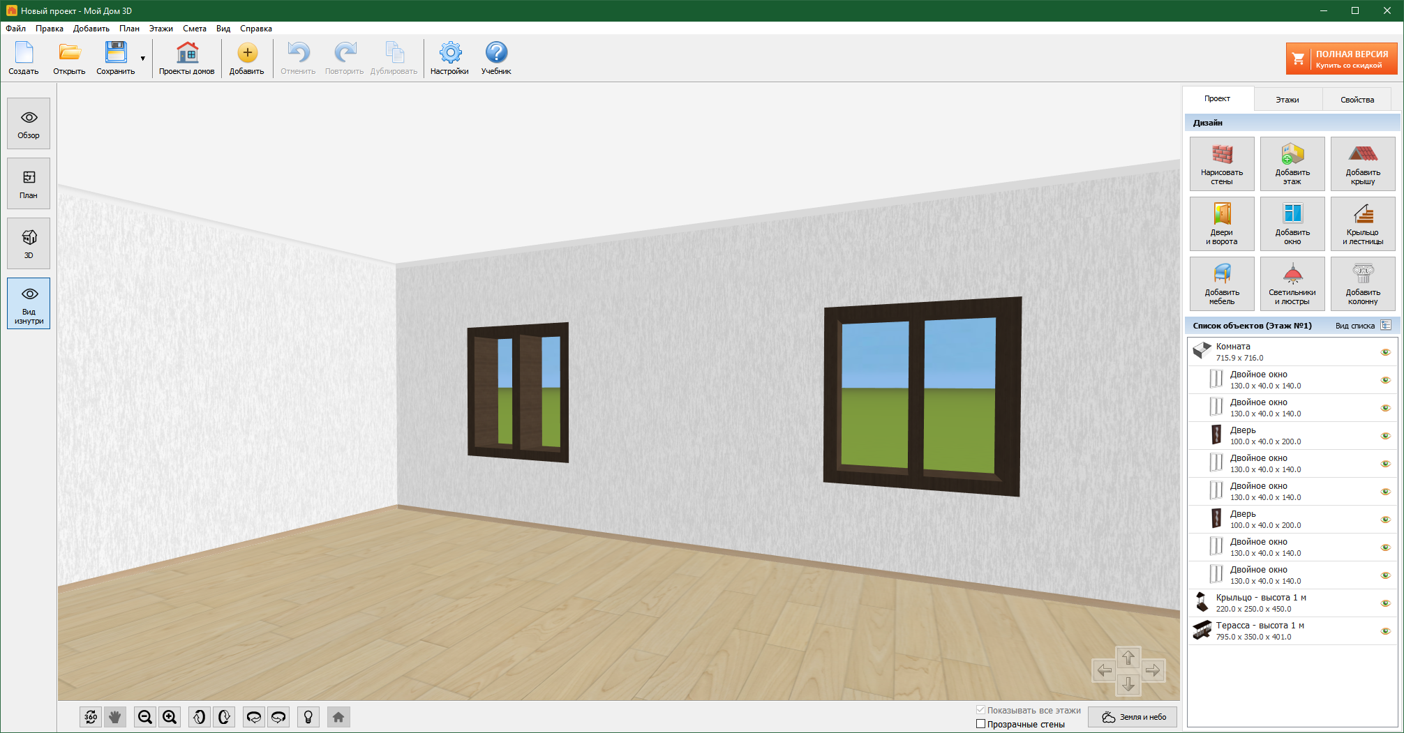 При скачивании Мой Дом 3D с сайта вы получите пятидневную демоверсию с небольшими ограничениями по возможностям. Что не мешает оценить полезность или бесполезность приложения.