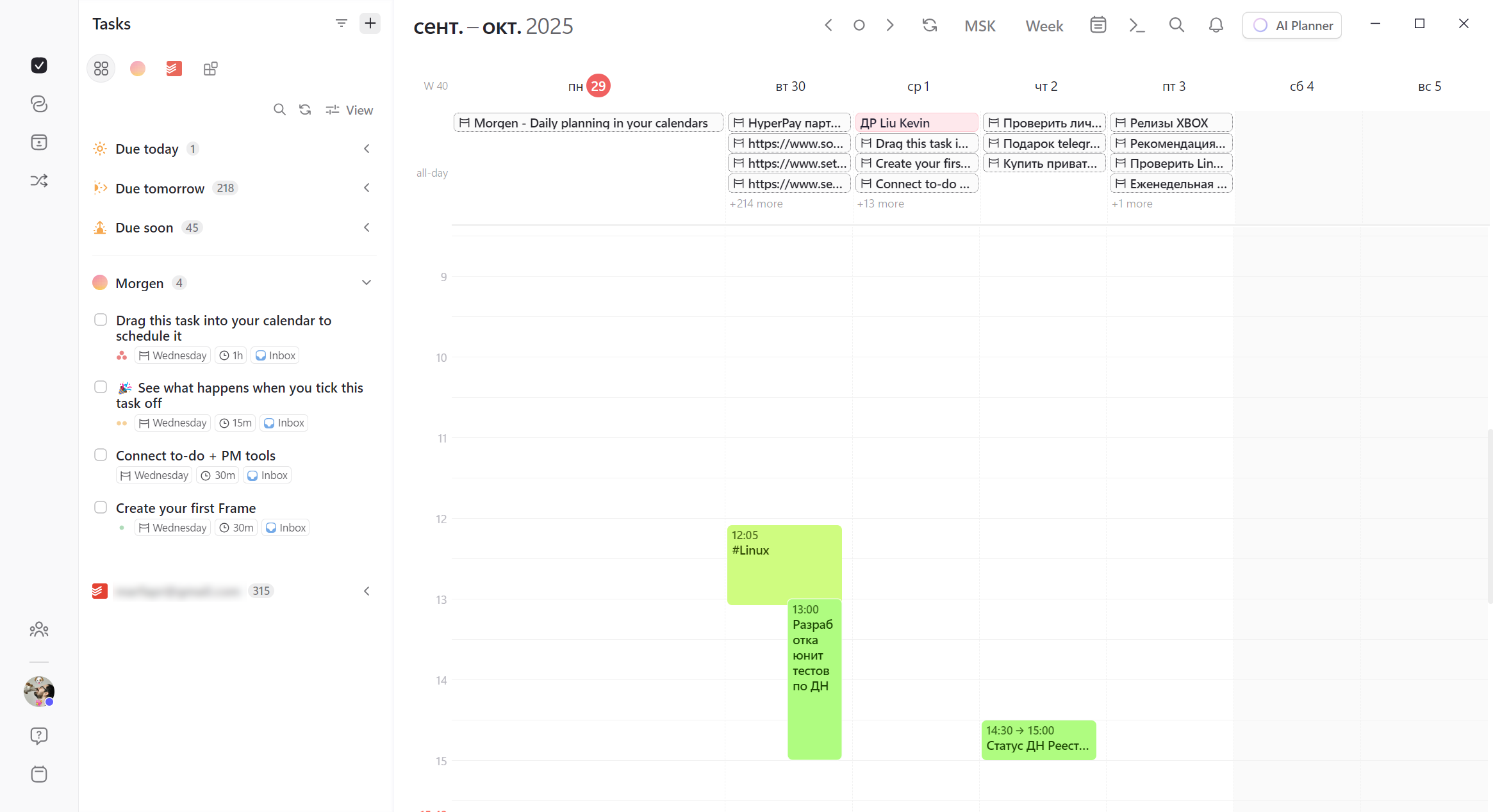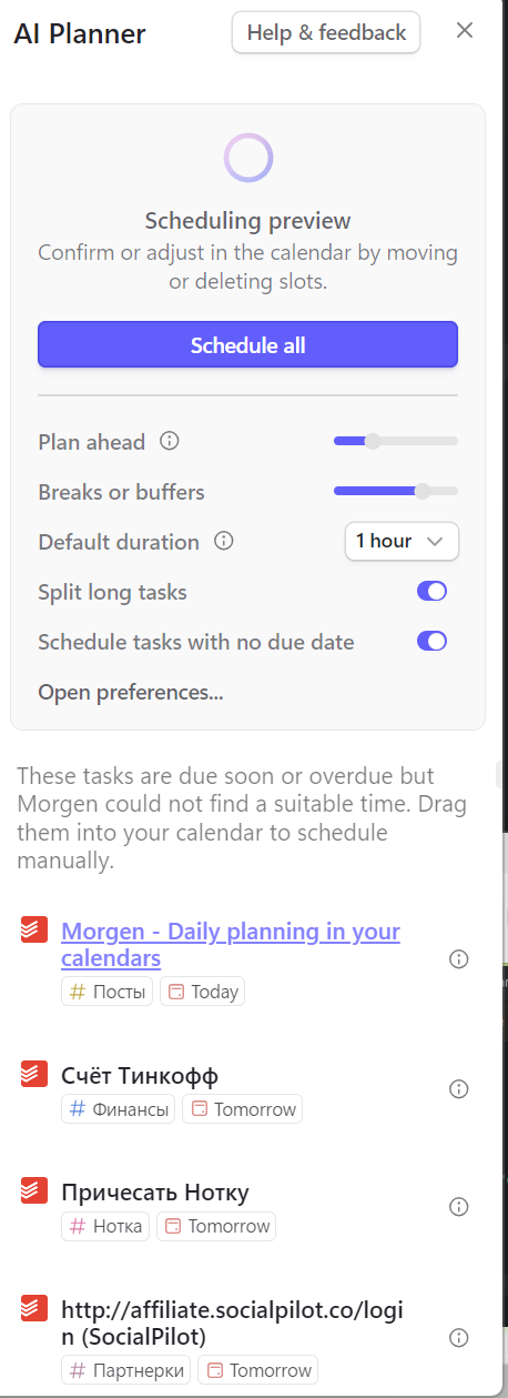 Второй раздел — AI Planner. Он поможет запланировать время для задач, у которых скоро истекает время выполнения.