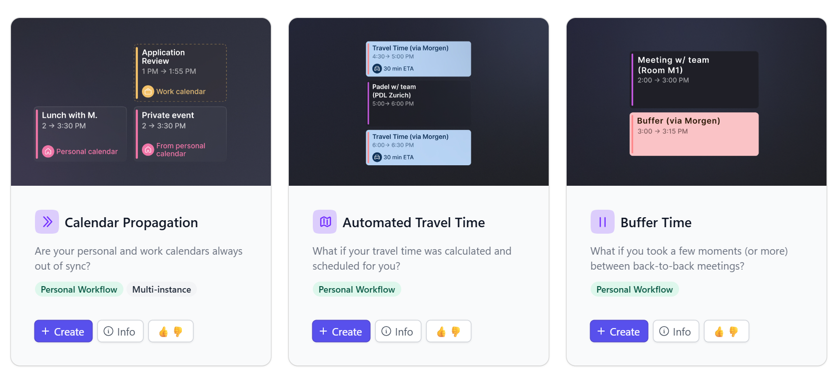 Нейронка в morgen скрывается в нескольких разделах. Первый из них — Morgen Assist, в котором вы можете подключить один из воркфлоу автоматизации календаря.