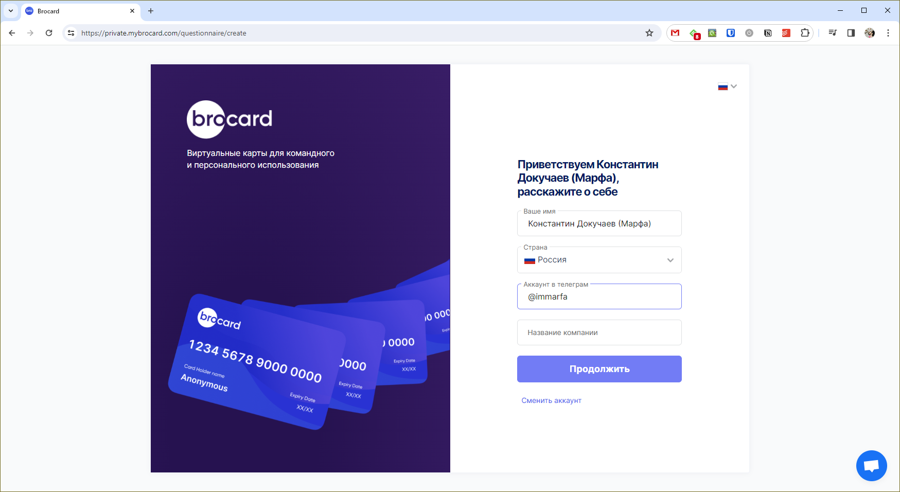 У MyBrocard есть и крутые плюсы. Например, не нужно проходить KYC — вне зависимости от количества карт и объёмов трат. Ребята предлагают большой выбор карт с разными ГЕО и под разные задачи с низкими комиссиями на пополнение и транзакции.