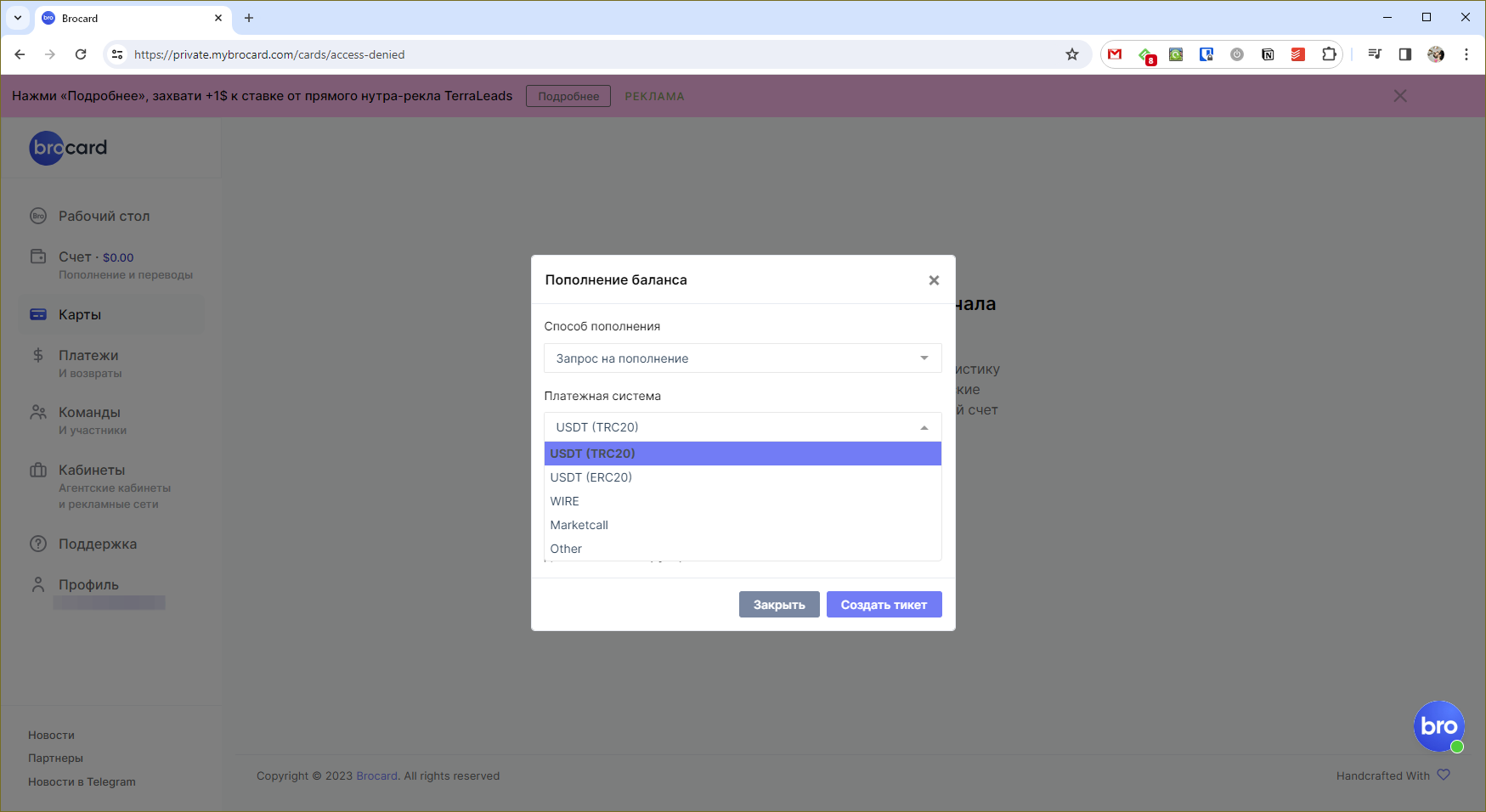 MyBrocard — сервис для выпуска виртуальных платёжных карт с американскими BIN. Часть карт отлично подойдёт для регулярных платёжек (aka покупок товаров), а часть специально рассчитана на оплату рекламных кабинетов Google и прочих сервисов, которые нельзя упоминать всуе.