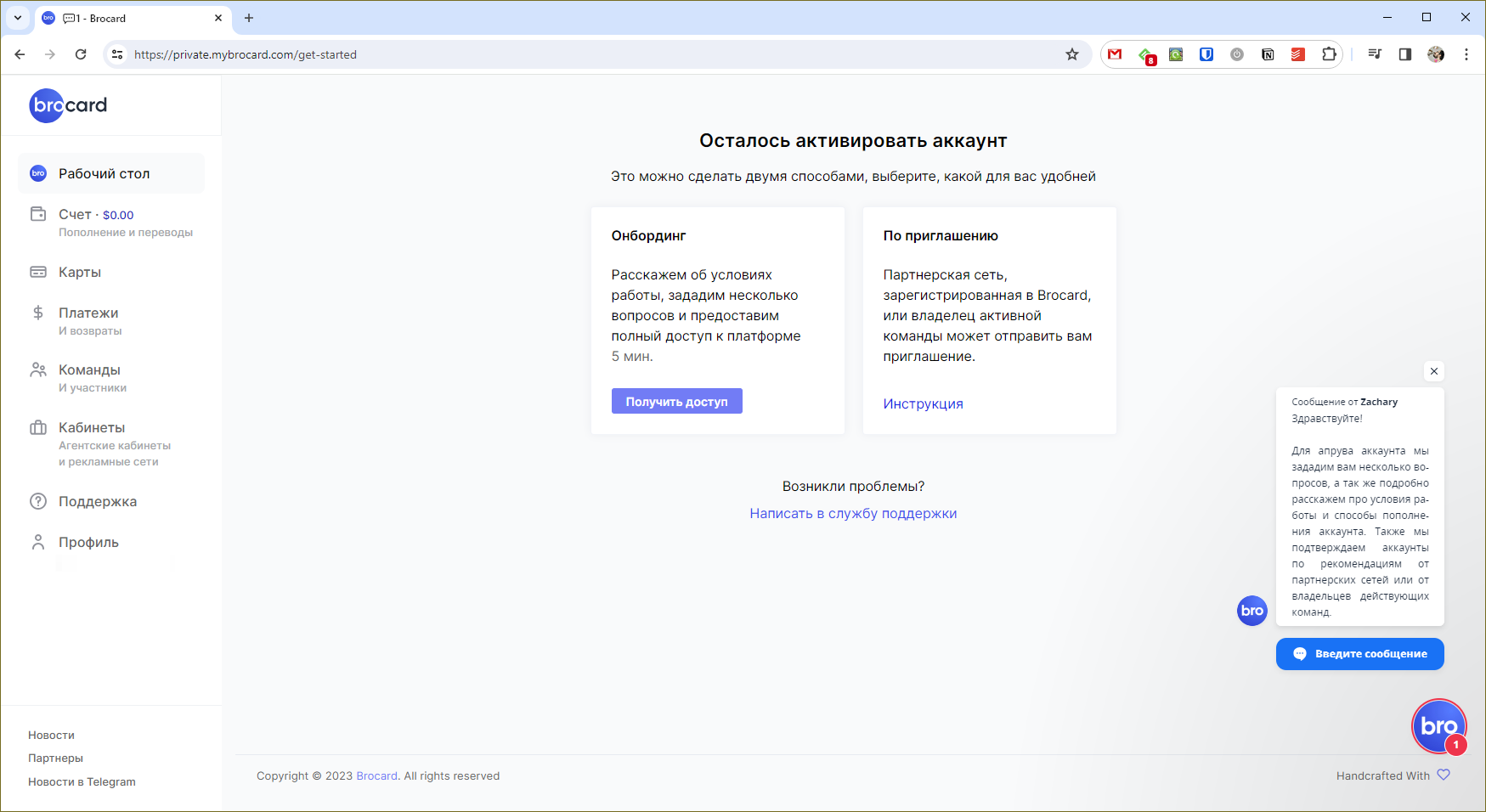 Но пользоваться сразу MyBrocard не получится. Предварительно нужно пройти онбординг, либо перейти в сервис по приглашению другого пользователя.
