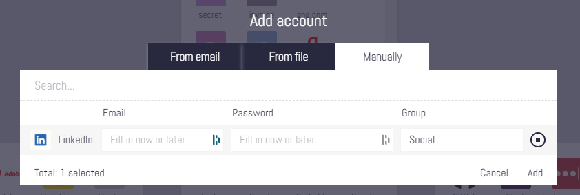 Чтобы создать новую связку логин-пароль, нужно нажать кнопку «Accounts», после чего вам предложат три варианта: импортировать данные из Gmail или Outlook; импортировать данные из популярных менеджеров паролей; создать пароль самому.