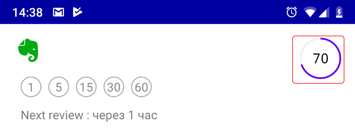 Уровень запоминания отображается в правом верхнем углу каждой карточки. Следующая дата повторения автоматически подстраивается в зависимости от этого значения.