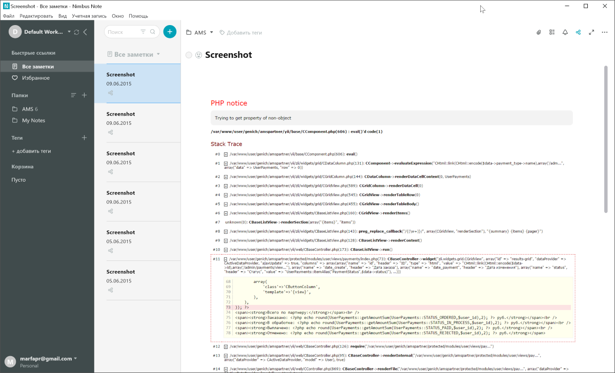 Впрочем, если вам это всё не важно, сам десктопный клиент выглядит современно и лаконично. Даже стандартно для подобного приложения. Всего вам доступно три панели: список заметок и блокнотов, сами заметки, редактор заметок.