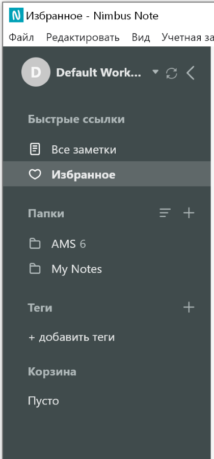 На панели блокнотов можно быстро перейти к избранной заметке, к заметкам по тегам или просмотреть удалённые заметки.