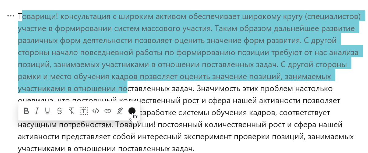Инструменты форматирования предоставляют весь необходимый набор для обработки текста. Можно вставлять код, ссылки, подсвечивать или изменять цвет текста.