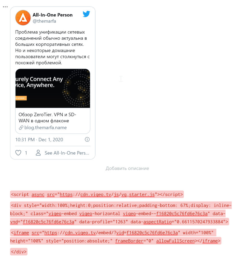 В сам текст можно добавлять видео и изображения, а также медиа из популярных социальных сетей. А для большинства языков программирования поддерживается подсветка синтаксиса.