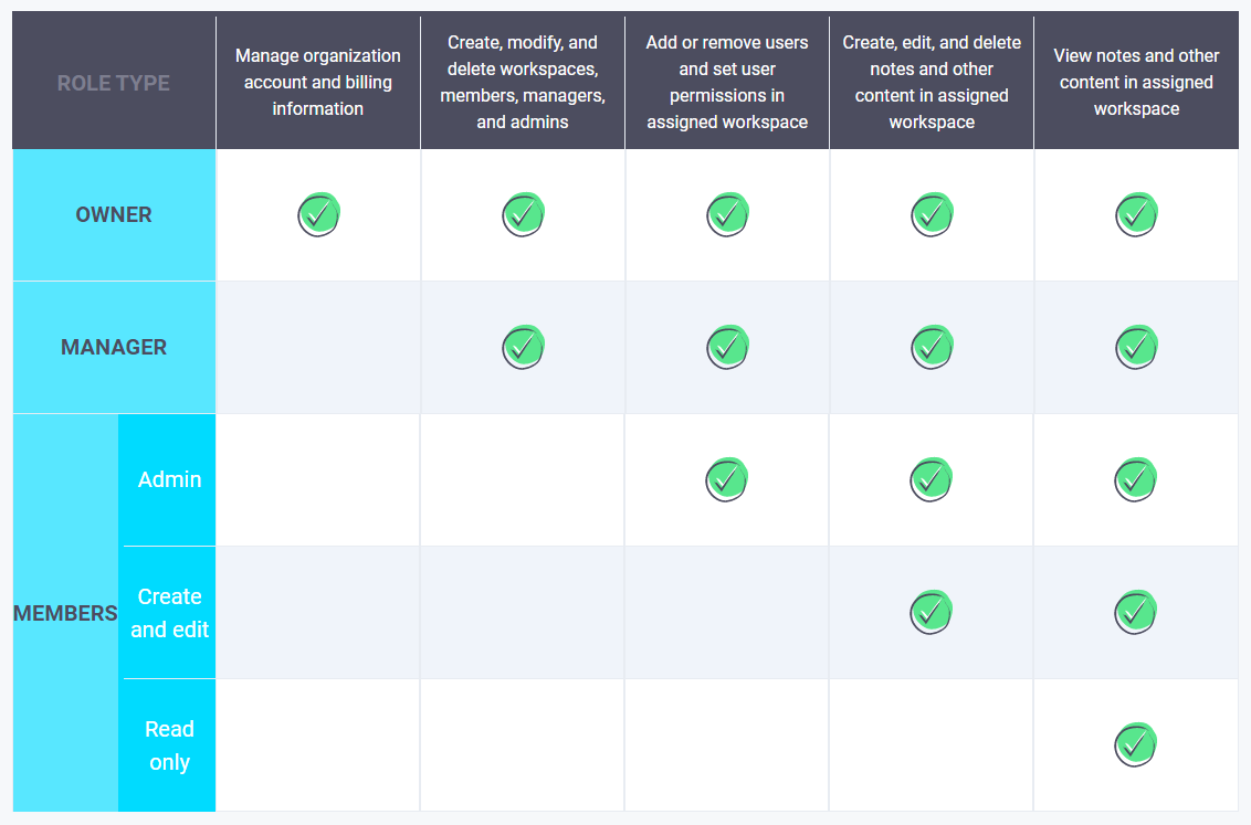Как я написал выше, Nimbus Note поддерживает командную работу. В этом случае вы можете создать различные рабочие пространства с чётким разделением ролей. Пользователи не смогут получить доступ к заметкам, которые им не предназначены.