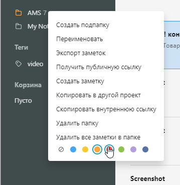 Как я писал вначале, для удобного поиска блокноты и заметки можно добавлять в избранное. Дополнительно можно настраивать собственные цвета, а к заметкам добавлять теги.