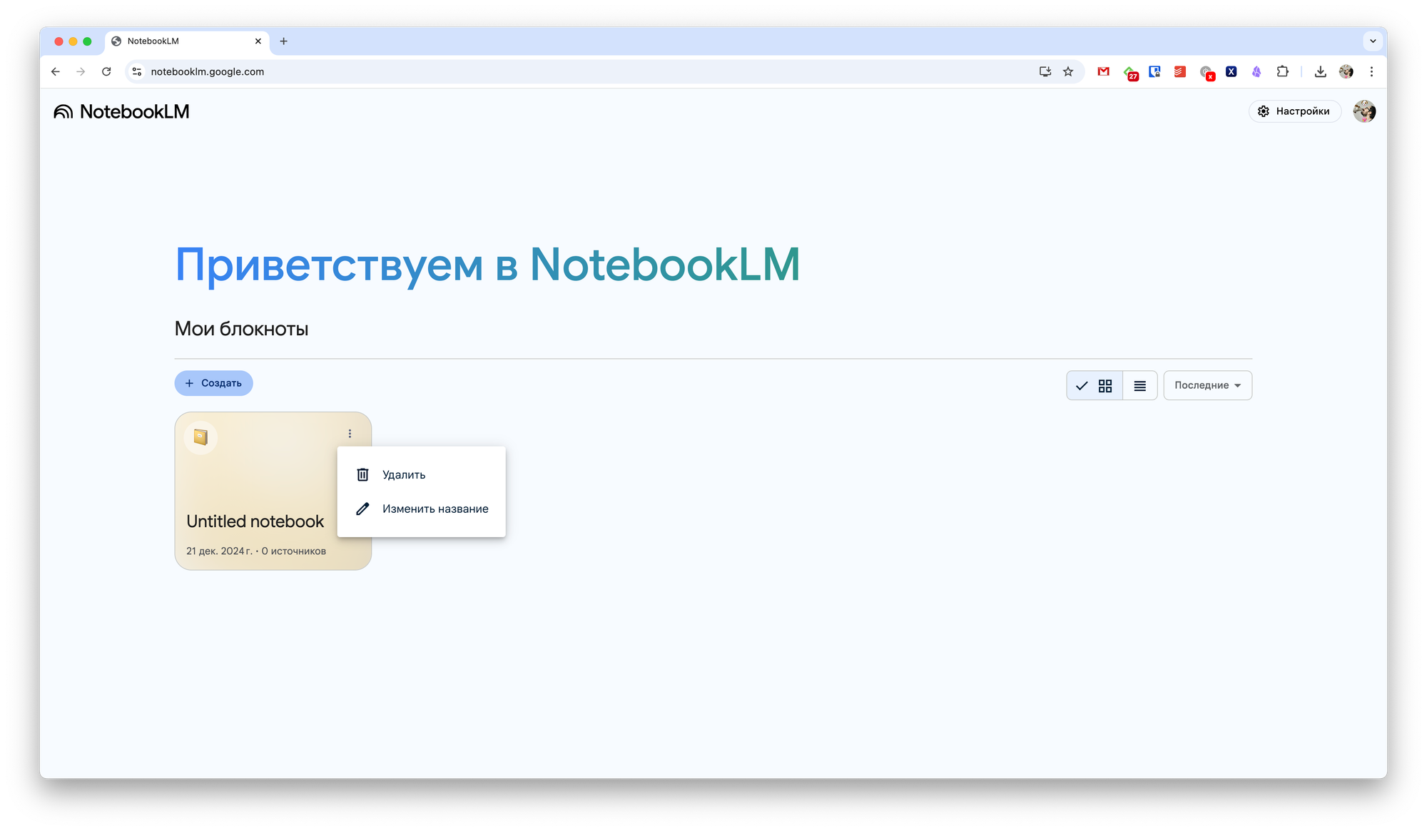 Информация в NotebookLM хранится в блокнотах, которых можно насоздавать сколько вам угодно. А вот создавать подблокноты, добавлять теги или производить какую-то иную организацию информации не получится.