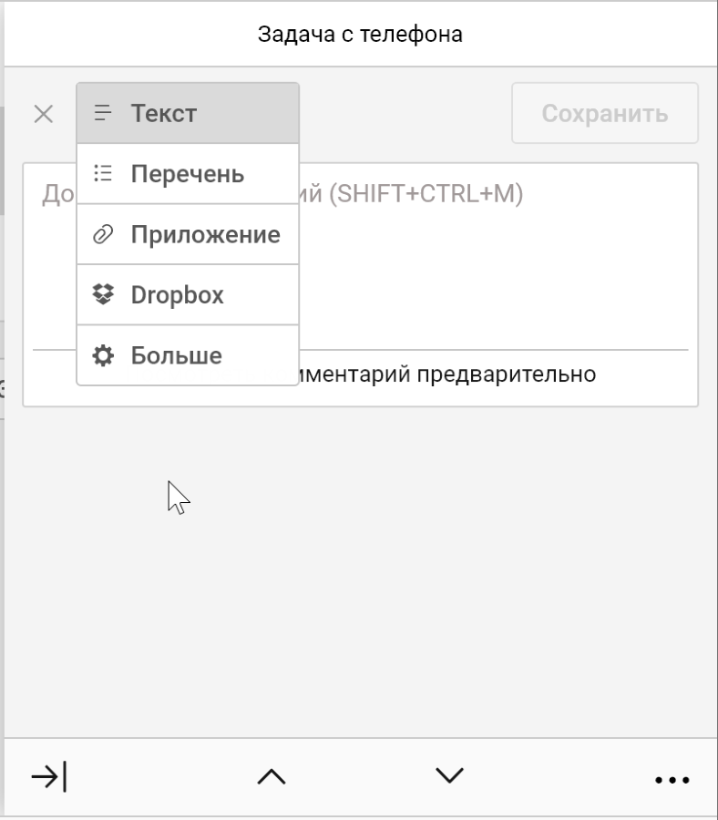 В комментарии можно добавлять текст, списки, файлы и данные из поддерживаемых онлайн-сервисов. Среди последних: Dropbox, Evernote, Box, Google Drive, One Drive.