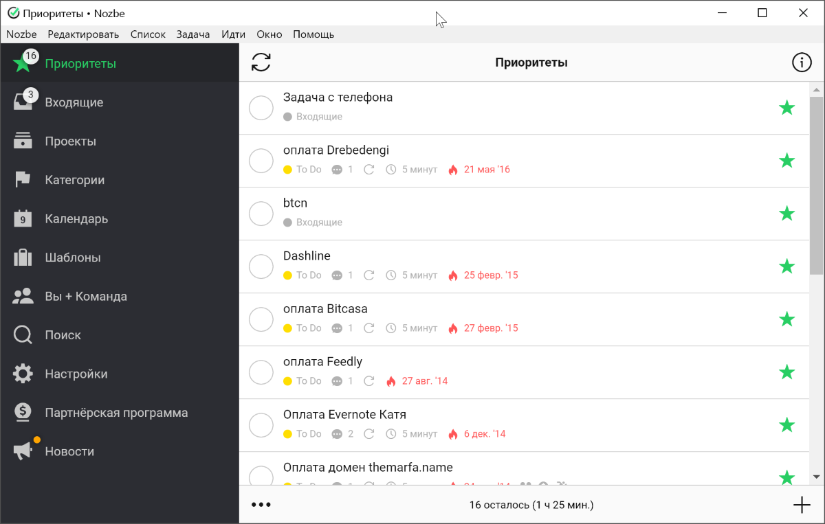 Интерфейс и возможности всех приложений абсолютно одинаковый. Поэтому неважно за каким устройством вы планируете чаще работать с Nozbe. А значит в своём обзоре я расскажу про Windows-версию.