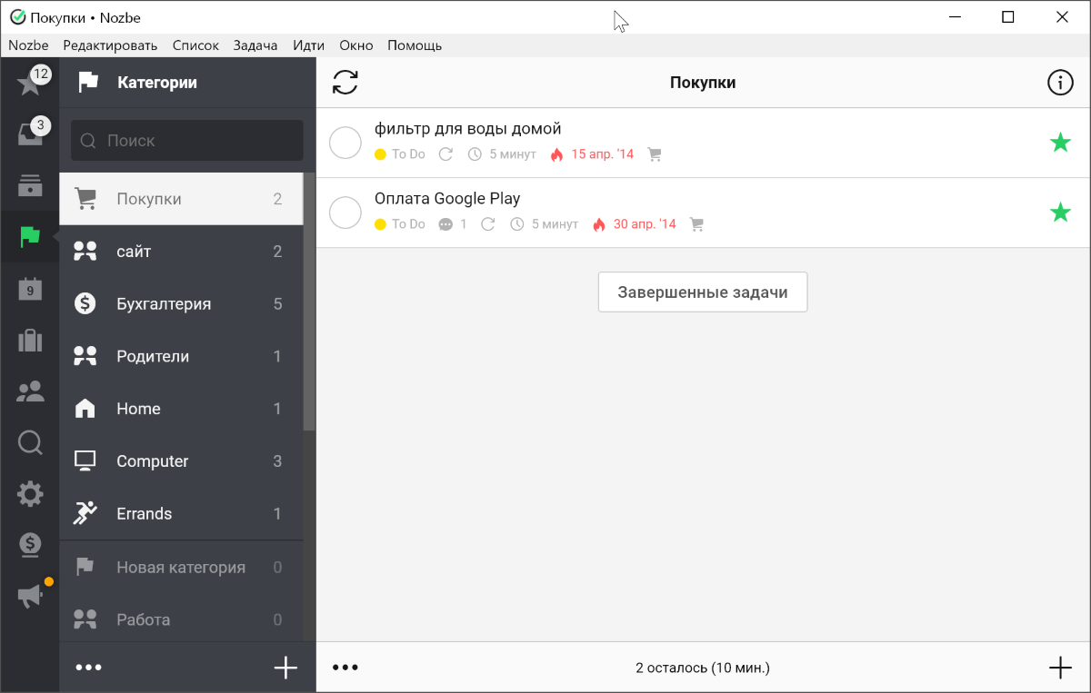 Задачи также можно разбивать по категориям. Их может быть сколько угодно у одной задачи. При выборе категории отобразятся все задачи, связанные с ней.