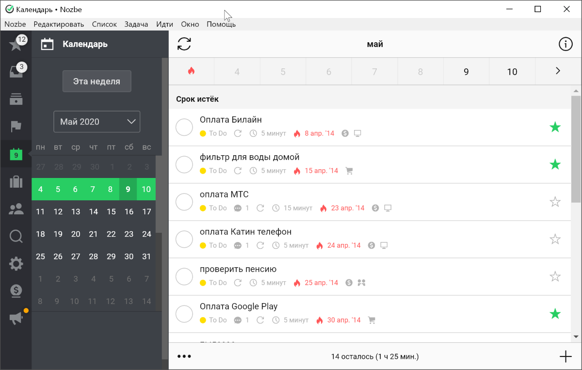 Как и ожидается, здесь можно просматривать все задачи на определённую дату. Ничего необычного.