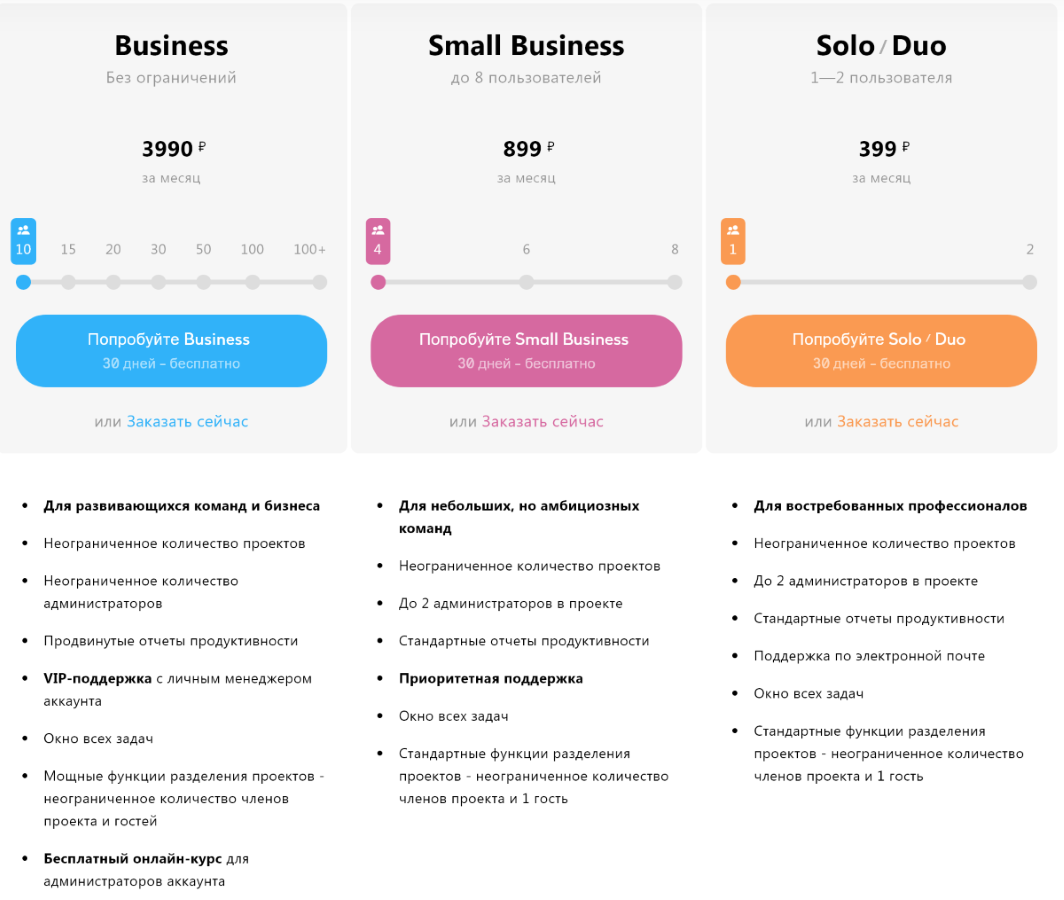 Платные аккаунты для личного использования стоят от 399 рублей в месяц.