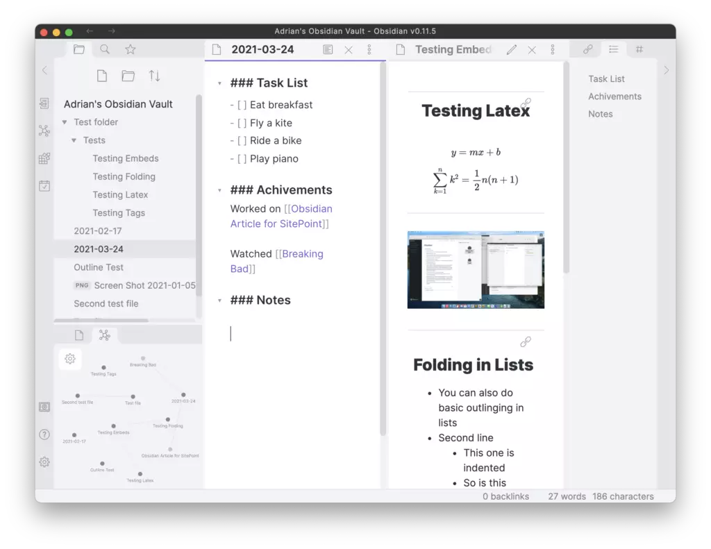 Ниже перечислю главные возможности Obsidian, которые вам могут пригодиться.