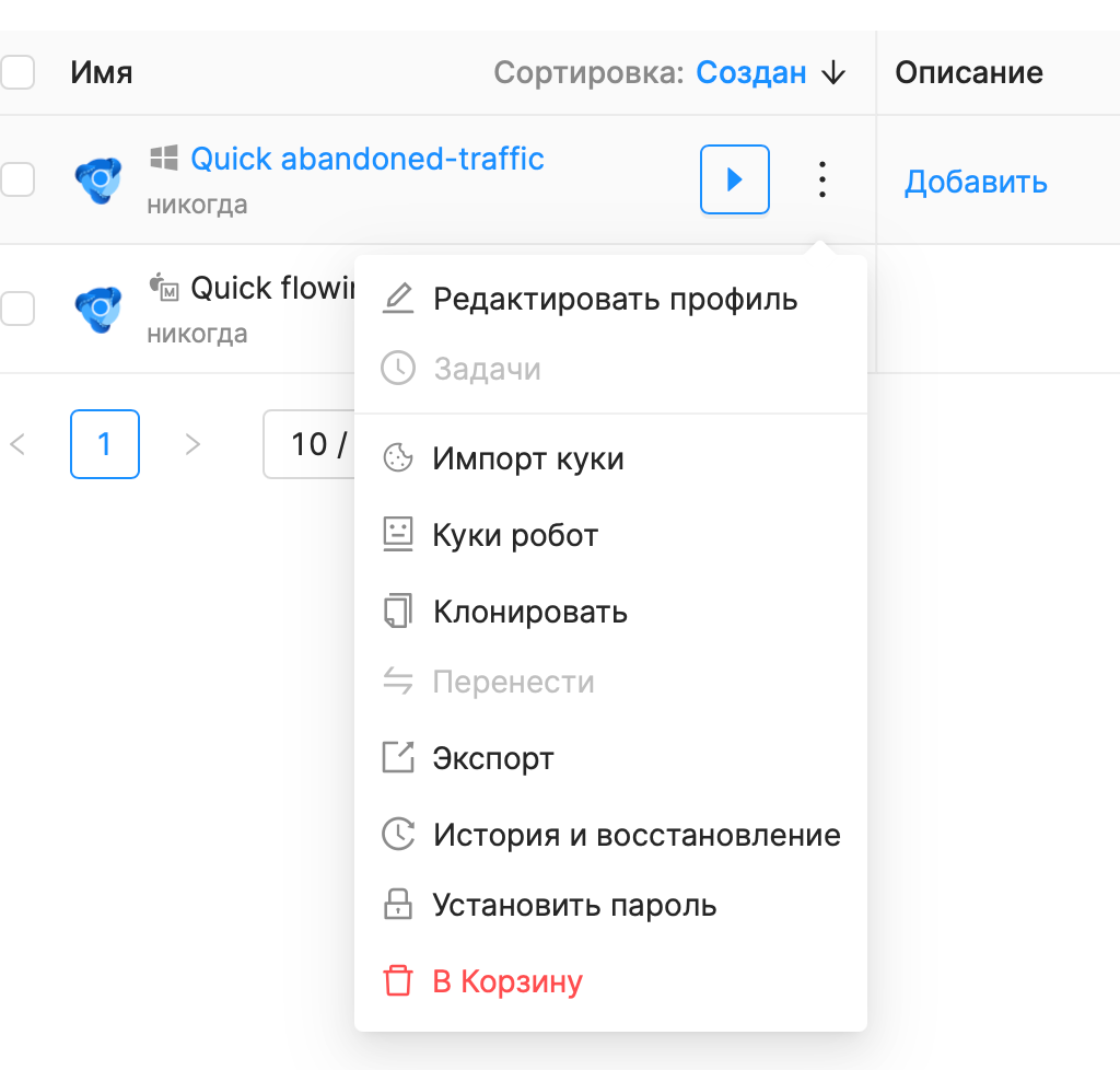 Для удобства навигации по профилям им можно задавать имена, описание и теги. А сами профили можно легко клонировать и переносить.
