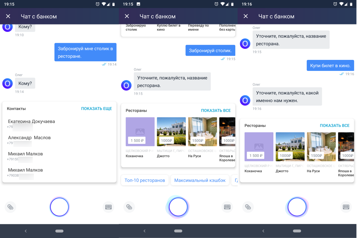 Олег не всегда сразу понимает о чём речь и вопросы надо формулировать максимально точно. Если вы начали заказывать столик, а вдруг решили купить билет в кино, Олег всё равно будет искать рестораны.
