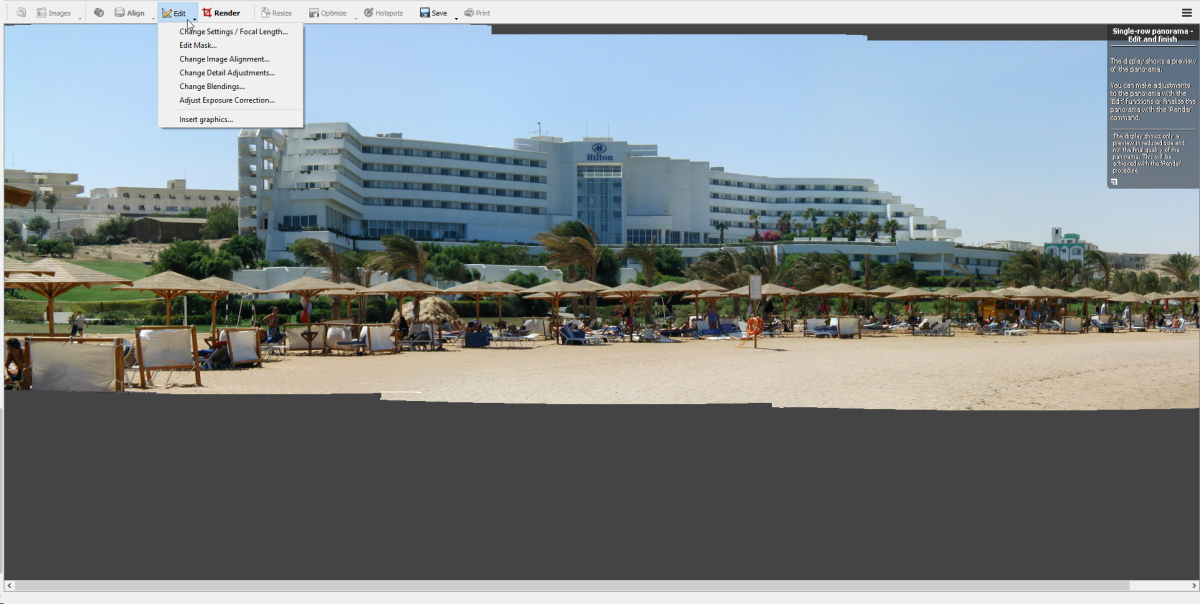 PanoramaStudio автоматически расположит фотографии согласно выбранному типу панорамы. А с помощью инструментов редактирования вы сможете внести необходимые правки: изменить фокус, сделать выравнивание, добавить маску и прочее.