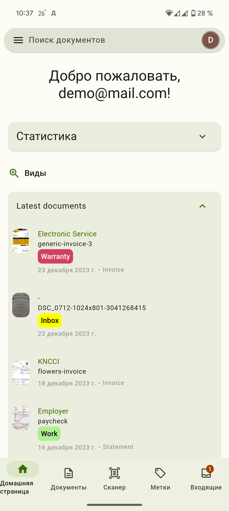 У Paperless-home есть мобильные приложения для Android и iOS, но рассказать про них я не могу. Авторизоваться на демосервере у меня не получилось, процесс завис на этапе аутентификации.