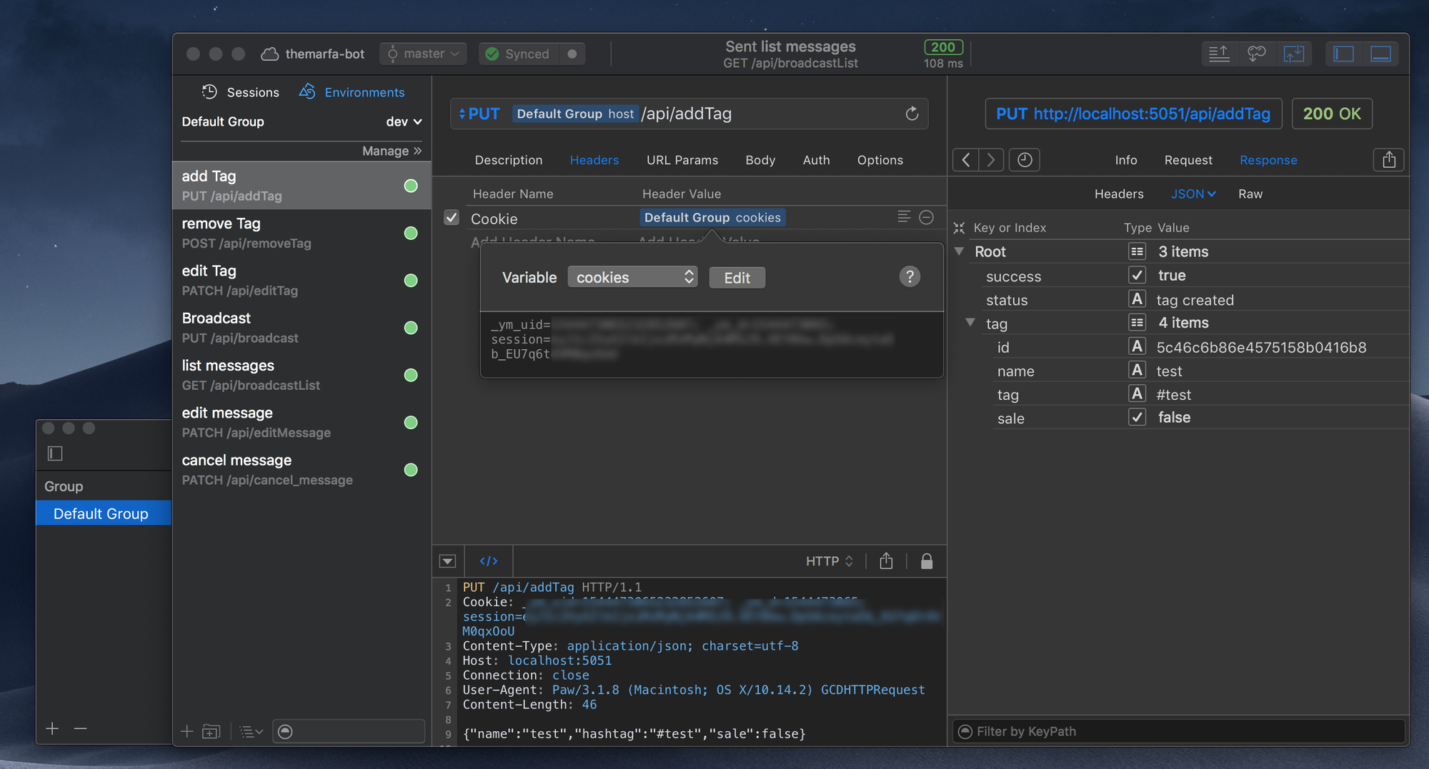 При помощи Paw можно легко описывать API прямо во время разработки. Каждое поле запроса можно описать при помощи Request Variable (переменные запроса). Что помогает проще понимать изменяемые значения, и добавлять понятные человеку описания.