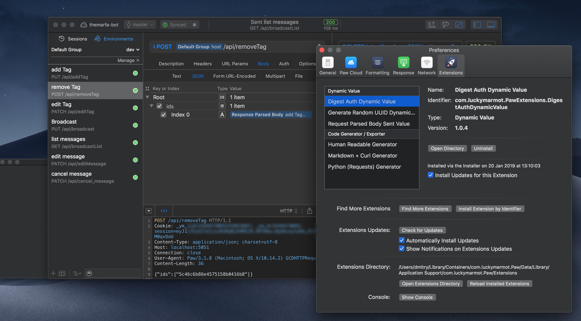 Многие разработчики любят Paw за Dynamic Values (динамические значения). В программах конкурентов работа с такими значениями устроена не так удобно, как здесь. Если что-то меняется при разработке, в Paw можно легко перенести значения из одного запроса/ответа в другой. Например, токены авторизации, которые любят часто меняться.