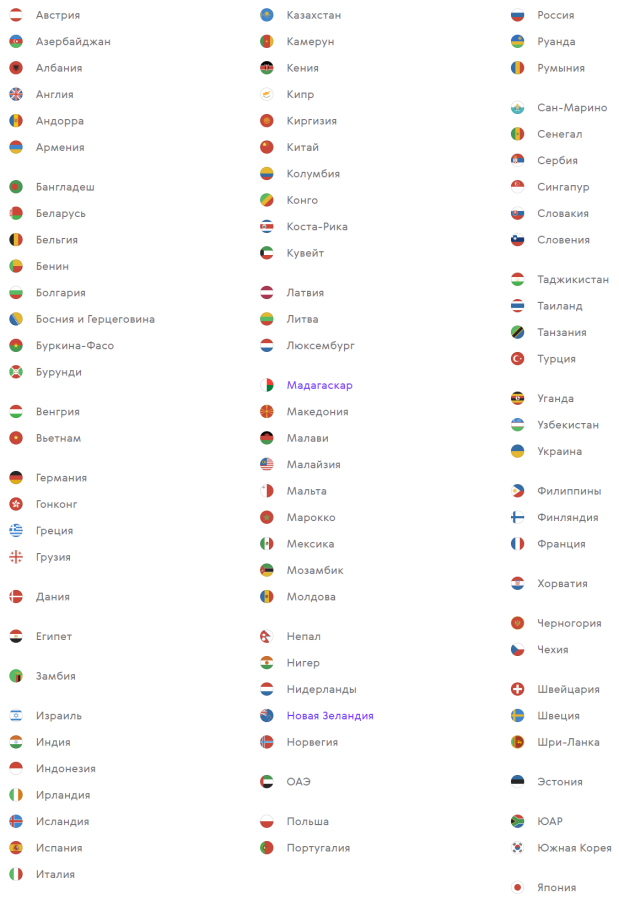 Практически куда угодно. Paysend поддерживает переводы в 90 стран мира, со списком которых можно ознакомиться на скриншоте ниже.