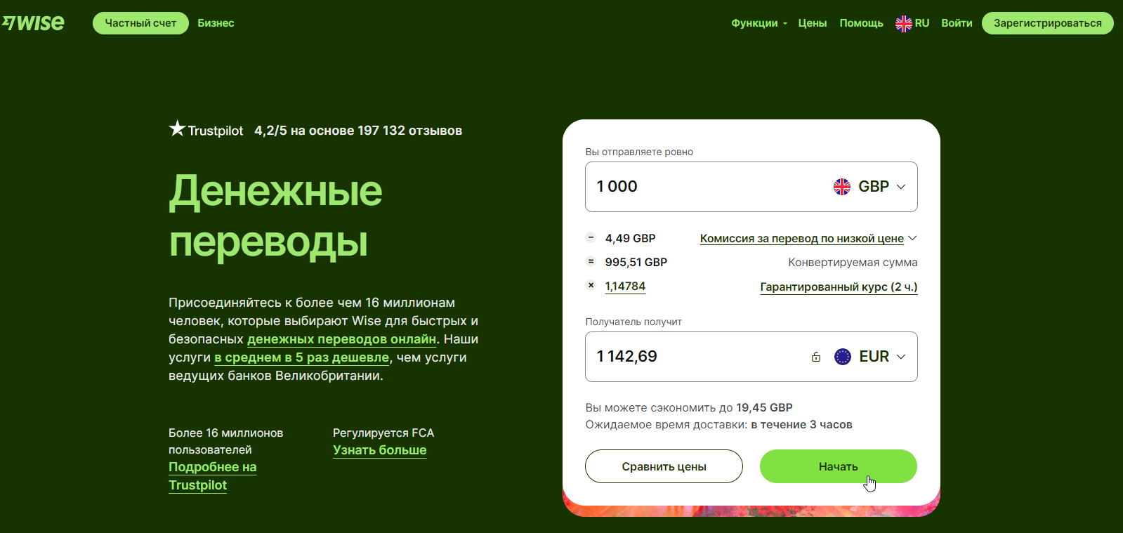 С его помощью можно легко перевести крупные суммы со сравнительно небольшой комиссией. Поддерживаются переводы между 160 странами в 40 валютах.