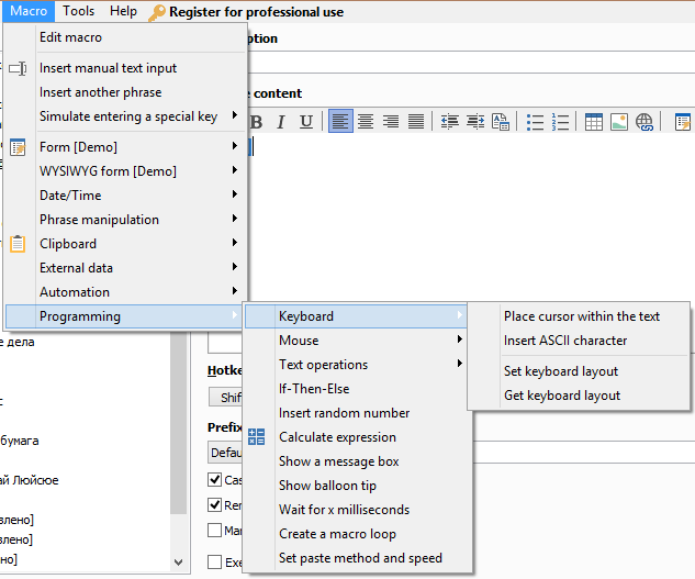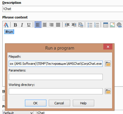 В начале описания этого сниппета, я не просто так написал, что я задал выполнение неформатированного текста. PhraseExpress позволяет создавать сниппеты с форматированным текстом.