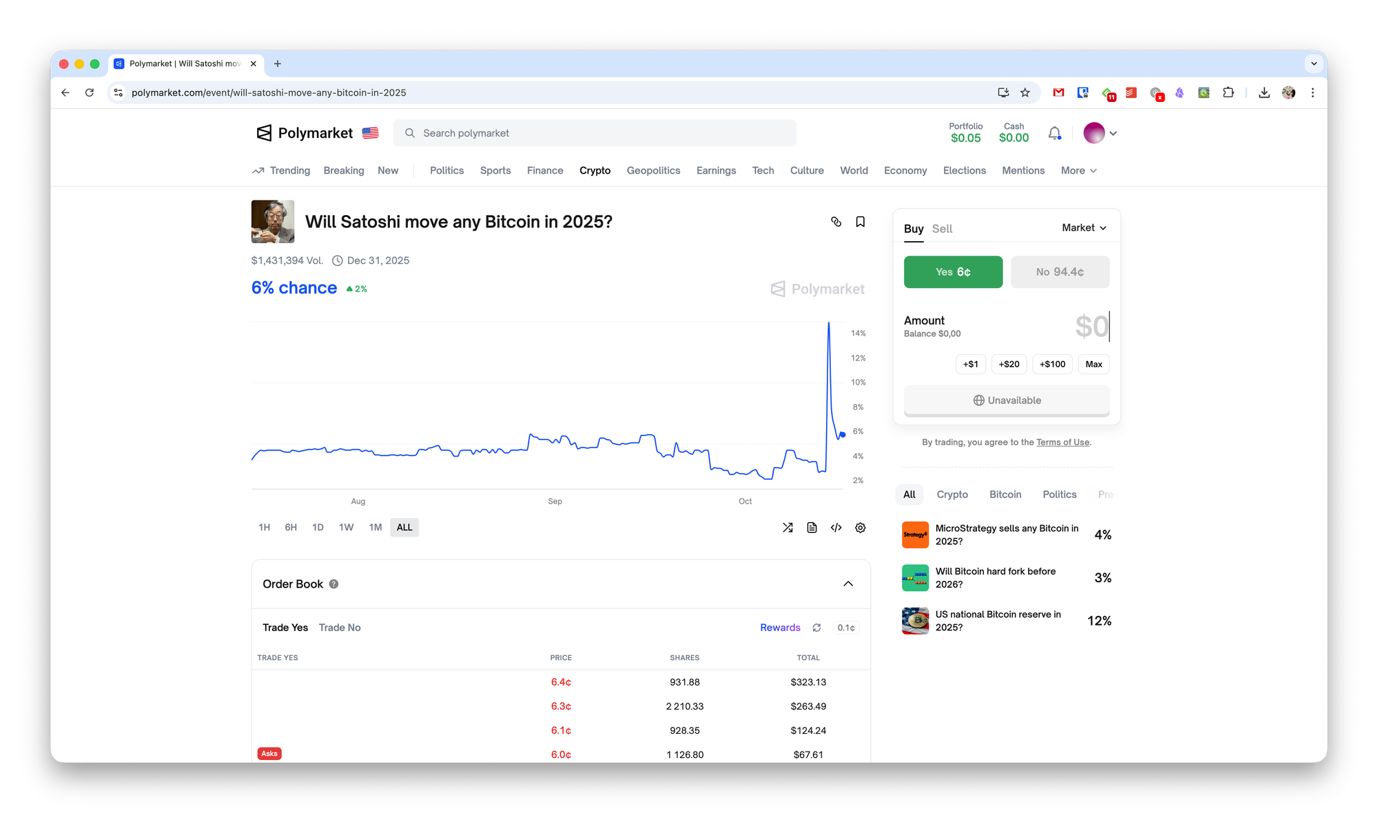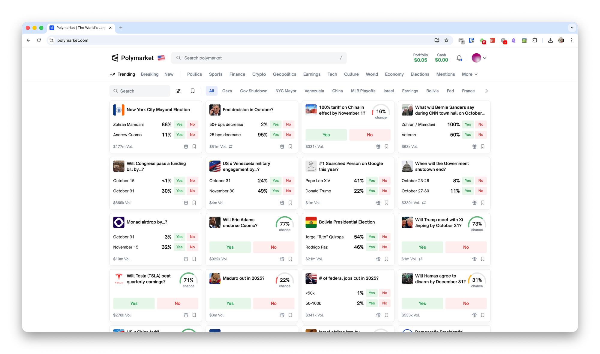 Один из таких сайтов — Polymarket. Пожалуй, это один из самых популярных сайтов для предсказаний исходов различных событий, построенный на блокчейне.