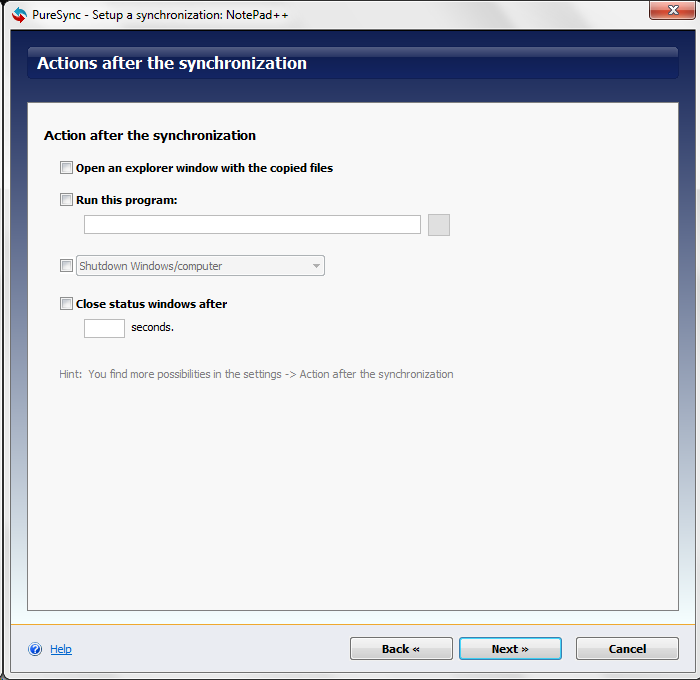 PureSync при первом знакомстве выглядит очень запутанной и сложной программой. С первого раза достаточно сложно сообразить как правильно настроить нужный вам тип синхронизации. Зато после первой настройки, вы уже можете никогда не заглядывать в эту программу.