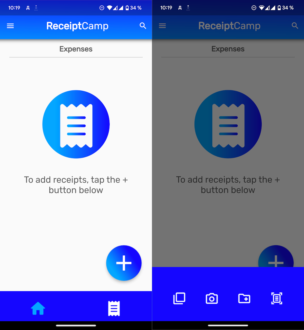 В приложении не так уж много возможностей. При нажатии на плюсик можно добавить файл чека, сфоткать его или отсканировать.