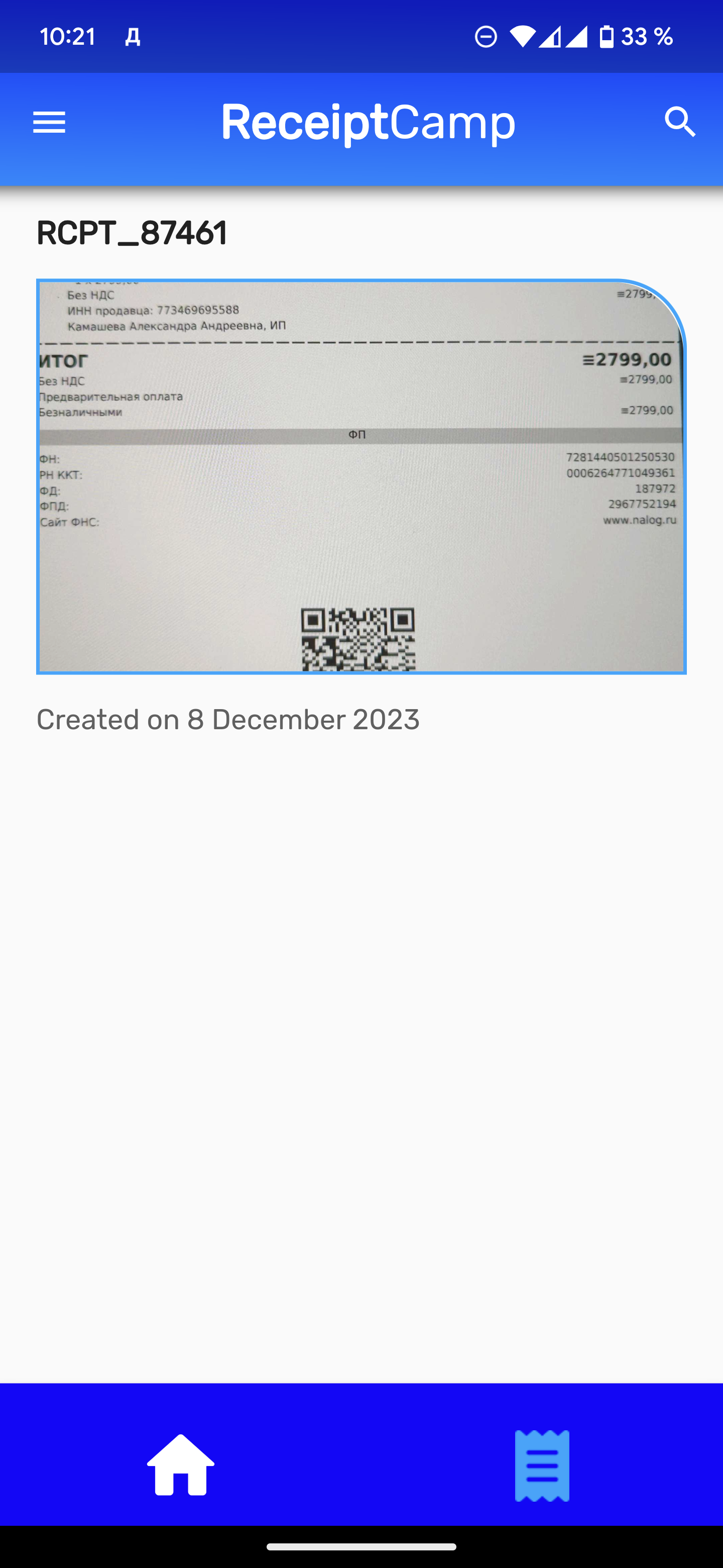 ReceiptCamp — бесплатное мобильное приложение для хранения чеков с возможностью категоризации и поиска по ним.