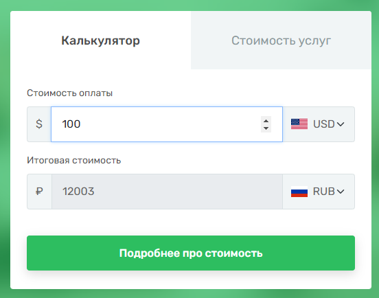 Если вам важны конкретные цифры, то минимальная комиссия составляет 690 рублей, но не более 20% с учётом курса доллара. А при оплате по ссылке из этой статьи можно получить скидку от 1 до 10% — в зависимости от выбранной услуги.