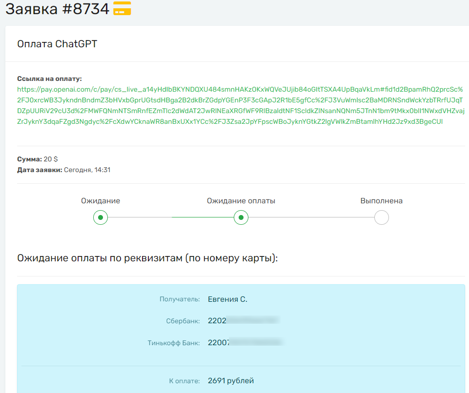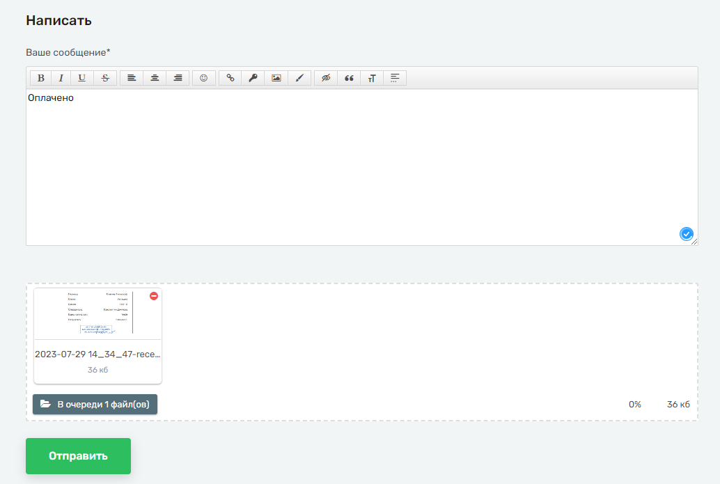 Теперь остаётся только подождать, пока менеджер произведёт оплату по вашей заявке. При возникновении различных проблем их можно оперативно решить в этом же чате.