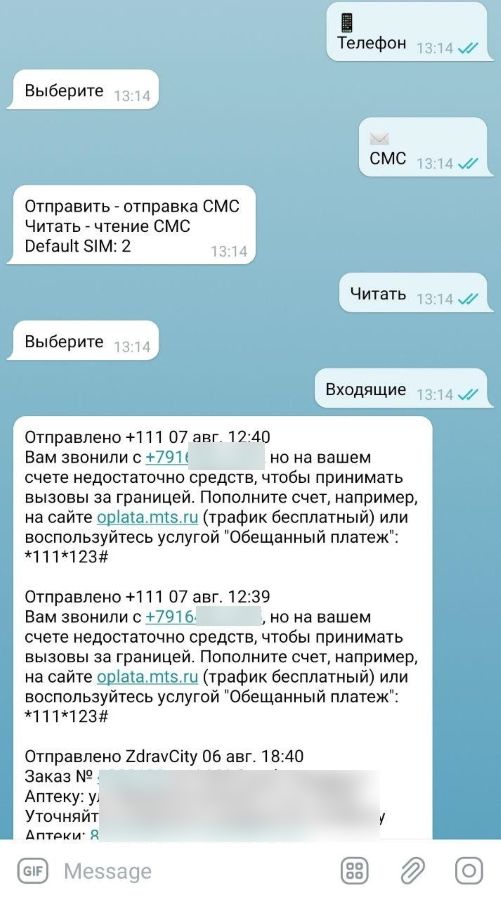 - Пересылка и отправка СМС в Telegram и Viber;