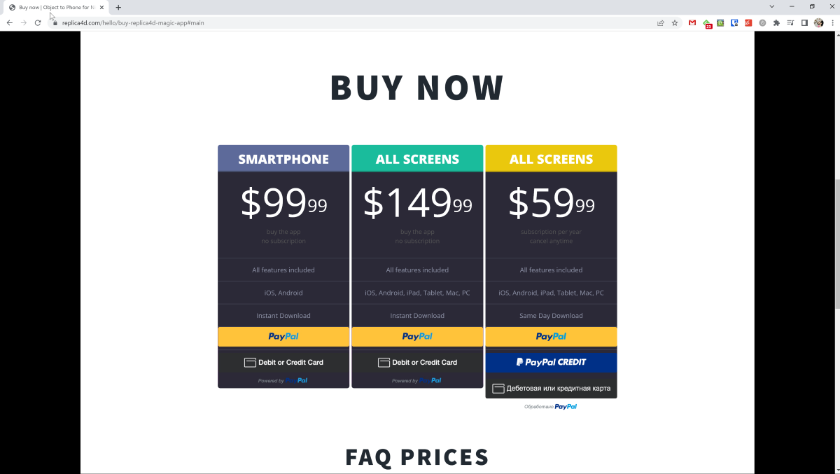 Как вы могли заметить на скриншоте в начале, у Replica4D есть три варианта оплаты.