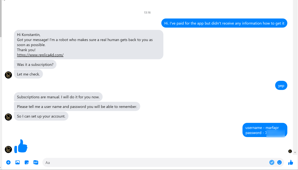 Я оплатил подписку на год, так как это самый дешёвый вариант. После оплаты мне на почту пришли чеки от PayPal и больше ничего. От самого сайта Replica4D ни единого сообщения, а на сайте я по-прежнему смотрел на тарифы.